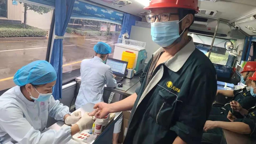 當(dāng)獻(xiàn)血車駛?cè)胩煲鈾C(jī)械廠區(qū),等候在活動(dòng)現(xiàn)場(chǎng)的員工相繼伸出手臂挽袖獻(xiàn)血,用愛心傳播正能量。許多參與獻(xiàn)血的員工是第一次獻(xiàn)血,當(dāng)他們想到自己的血液能夠幫助到有需要的人,臉上紛紛露出燦爛的笑容。