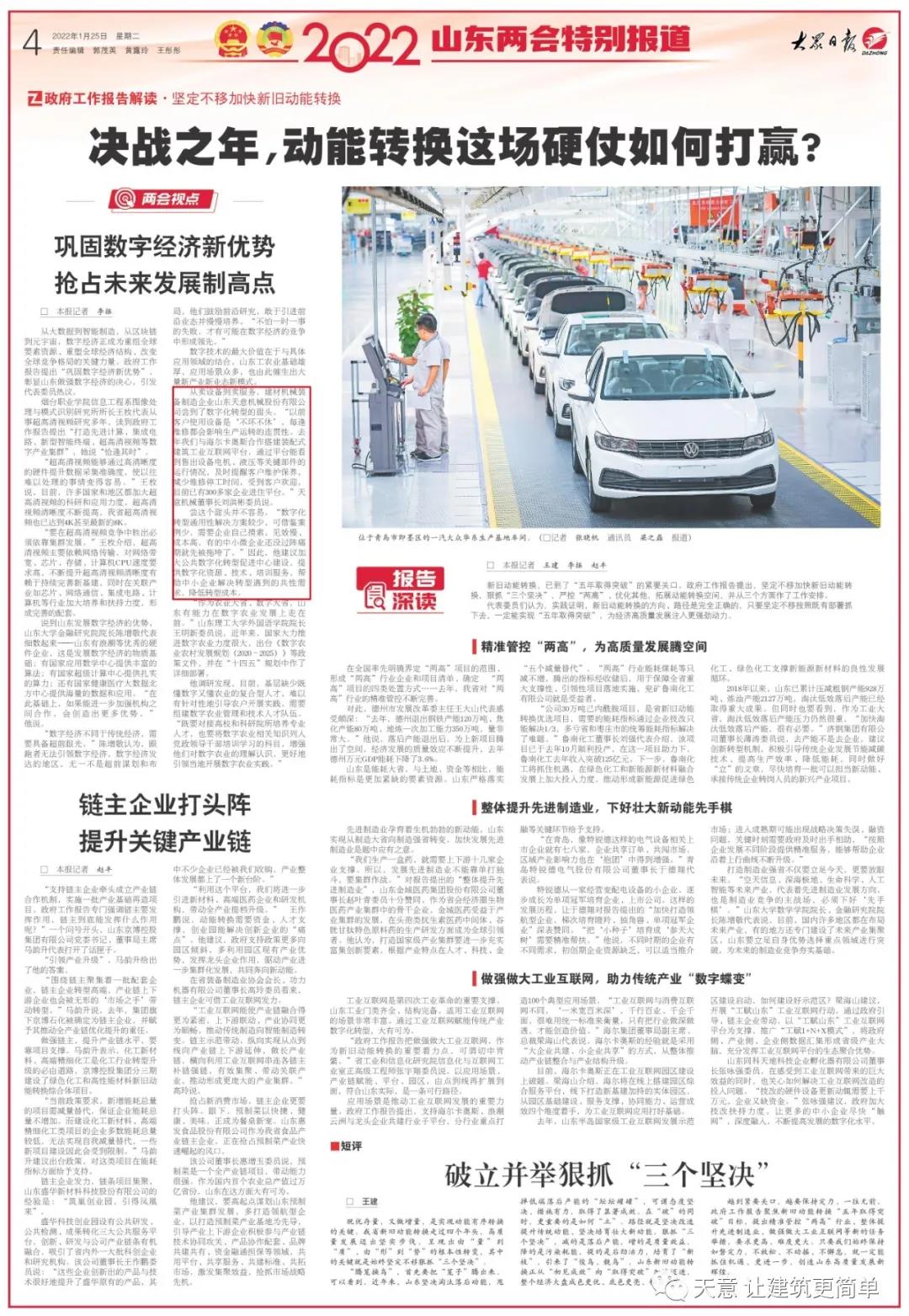 會議期間,劉洪彬提交了《關(guān)于加快山東省中小企業(yè)數(shù)字化轉(zhuǎn)型的建議》的提案,并就數(shù)字化轉(zhuǎn)型的相關(guān)內(nèi)容接受了大眾日報記者的采訪。劉洪彬告訴記者,“以前客戶使用設(shè)備是‘不壞不休’,每逢維修都會影響生產(chǎn)運轉(zhuǎn)的連貫性。去年我們搭建了裝配式建筑工業(yè)互聯(lián)網(wǎng)平臺,通過平臺能看到售出設(shè)備電機、液壓等關(guān)鍵部件的運行情況,及時提醒客戶維護保養(yǎng),減少維修停工時間,受到客戶歡迎,目前已有300多家企業(yè)進駐平臺。“數(shù)字化轉(zhuǎn)型通用性解決方案較少,可借鑒案例少,需要企業(yè)自己摸索,見效慢、成本高,有的中小微企業(yè)還沒過陣痛期就先被拖垮了。”因此,他建議“加大公共數(shù)字化轉(zhuǎn)型促進中心建設(shè),提供數(shù)字化資源、技術(shù)、培訓(xùn)服務(wù),幫助中小企業(yè)解決轉(zhuǎn)型遇到的共性需求,降低轉(zhuǎn)型成本。”