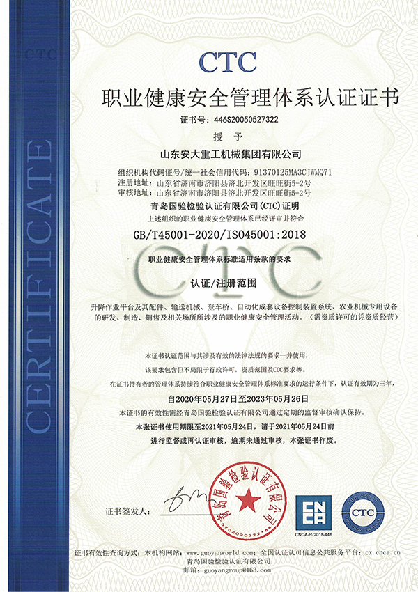 職業(yè)健康安全管理體系認(rèn)證證書