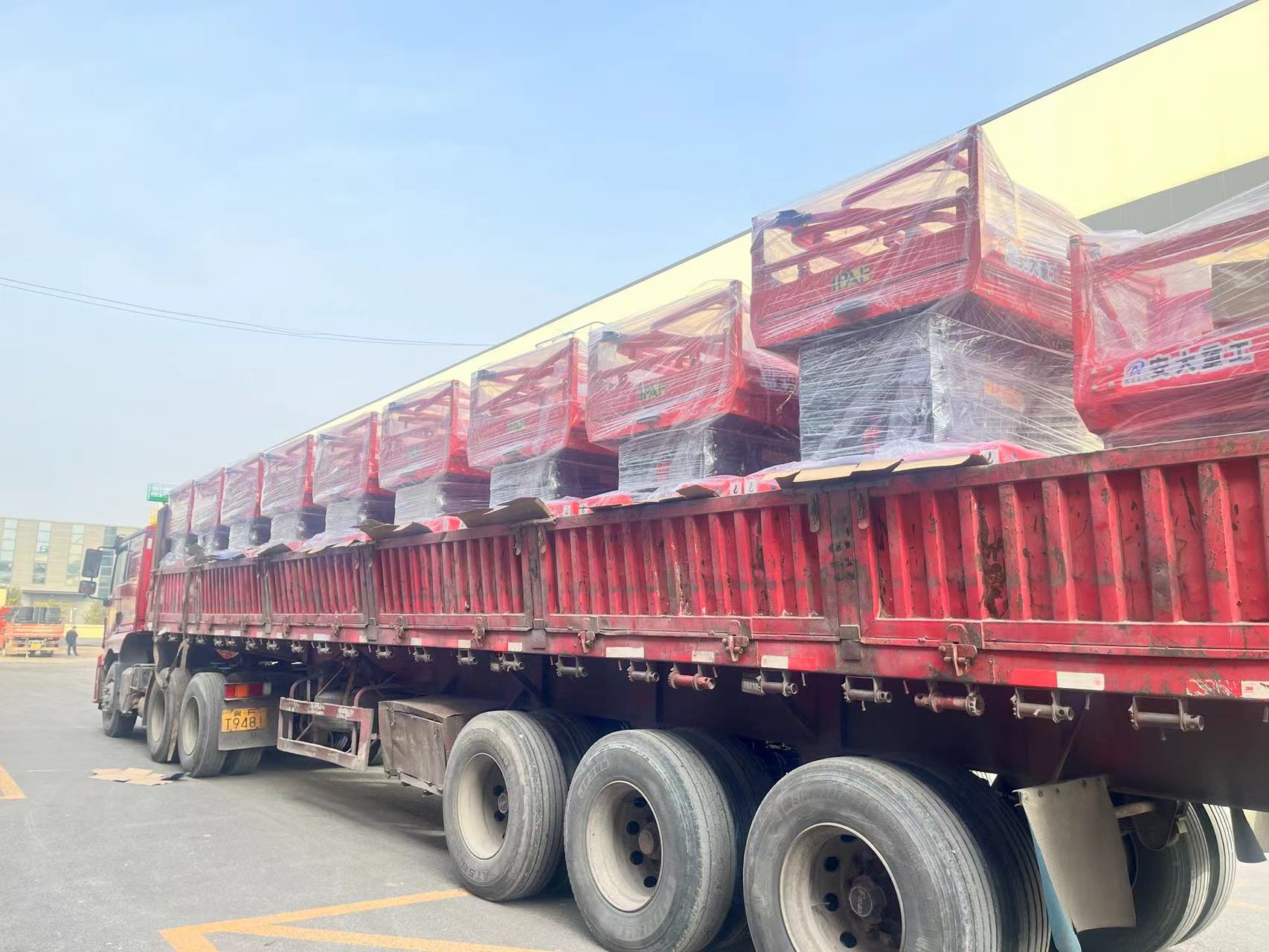 新征程,新高度!熱烈祝賀11臺(tái)自行走剪叉升降平臺(tái)順利裝車發(fā)貨!