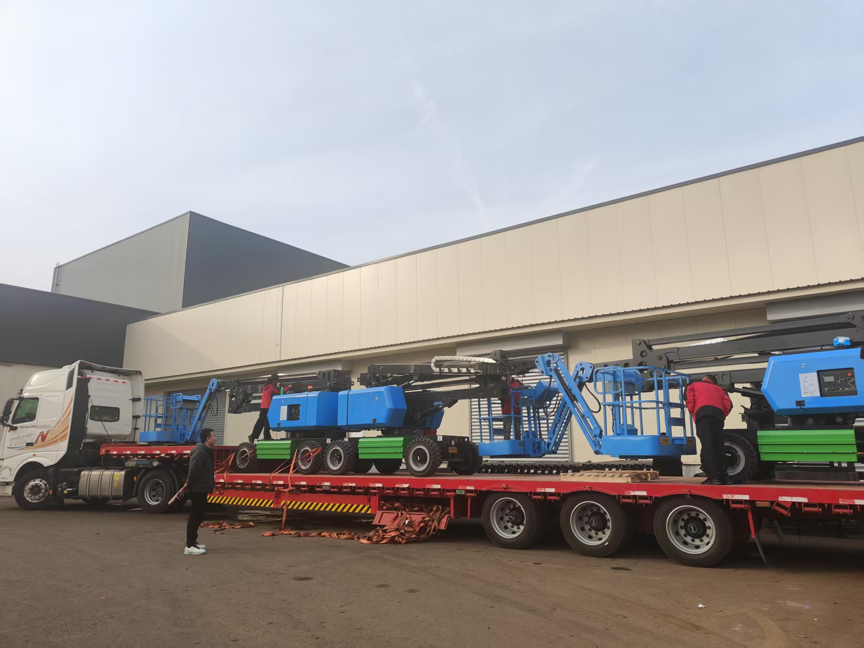 此刻,裝車完成的不僅是三臺升降平臺,更是三份沉甸甸的信任與承諾。它們將穿越山川,抵達未知的工地,在那里——也許是新樓宇的輪廓初顯,也許是大型場館的鋼結(jié)構(gòu)正在空中編織,也許是亟待維護的設(shè)施高處——它們的臂膀?qū)⒁闳徽归_,成為建設(shè)者腳下最堅實的地基,托舉著效率,也托舉著安全。